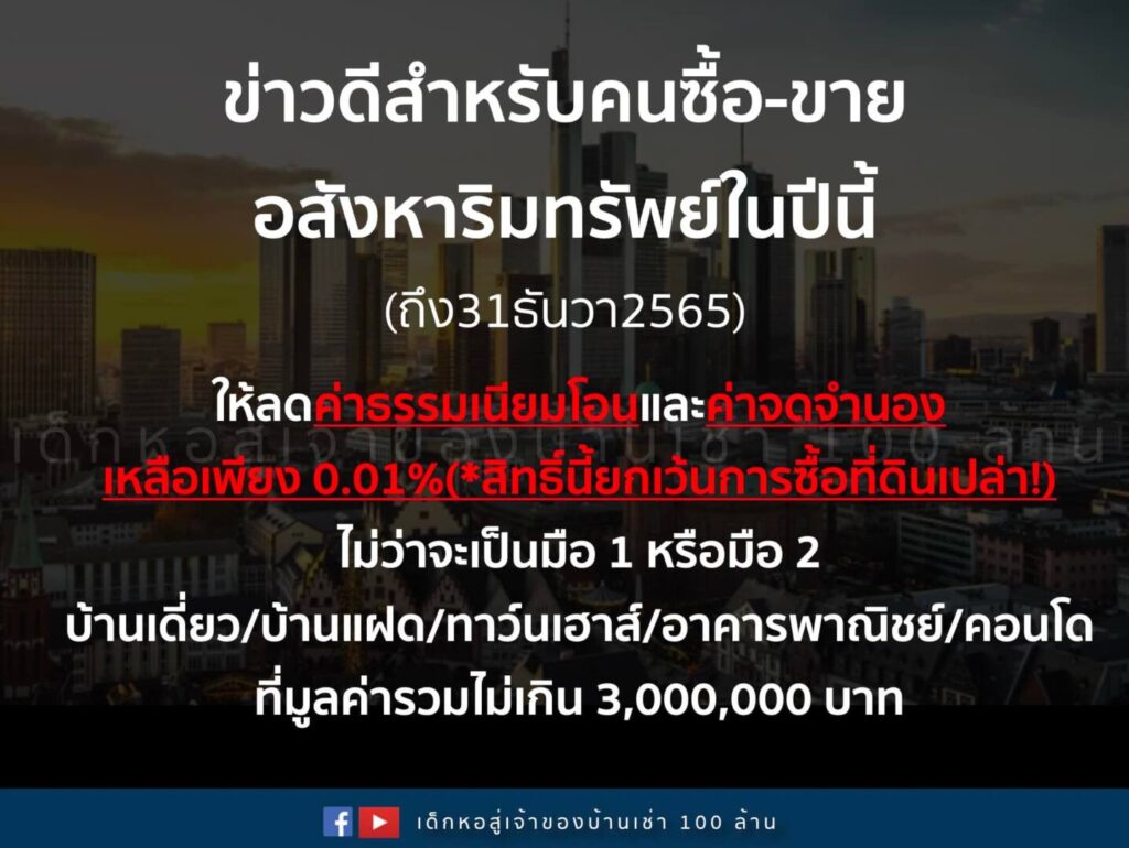 ข่าวดีสำหรับคนซื้อขายอสังหาริมทรัพย์ในปี 2565 ทั้งปี