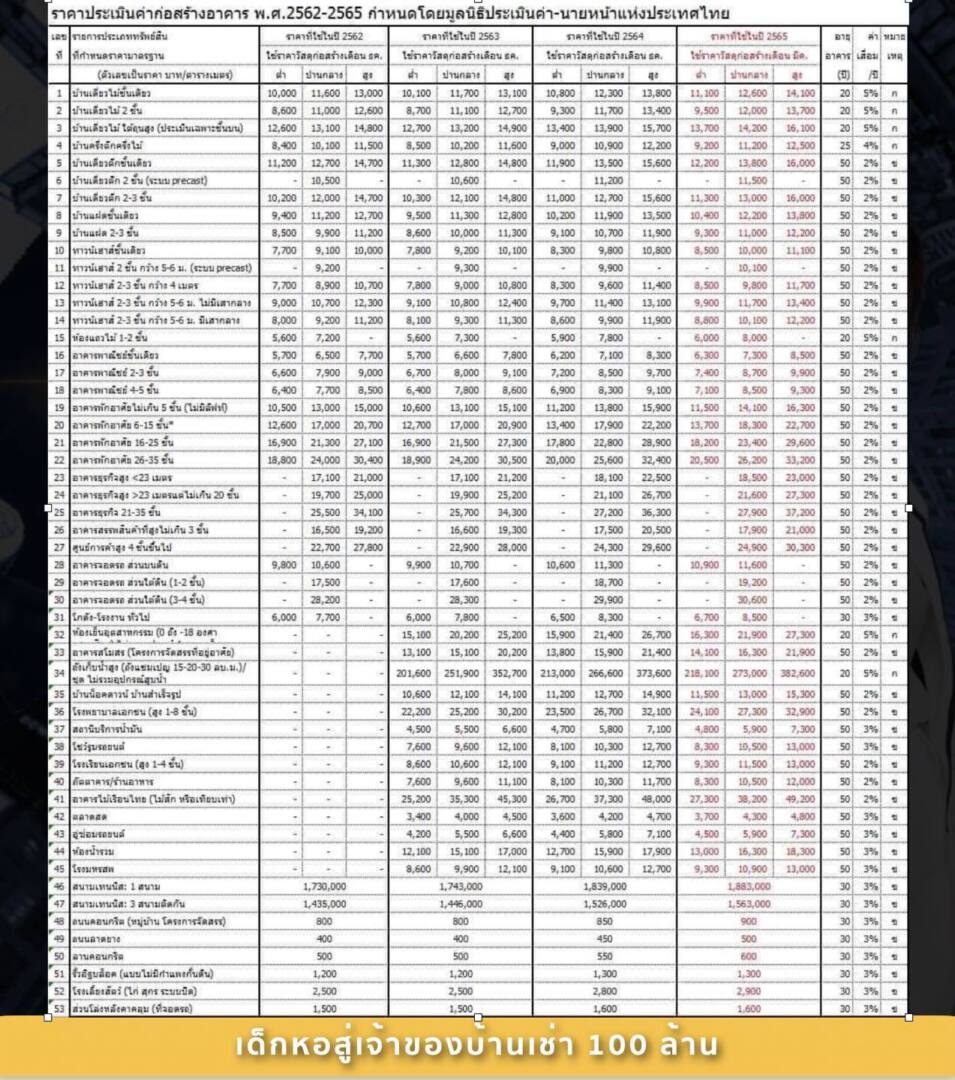 ราคาสิ่งปลูกสร้างอิงตามสมาคมผู้ประเมินค่าทรัพย์สินแห่งประเทศไทย (แจกตารางให้ในalbumรูปโพสต์นี้)